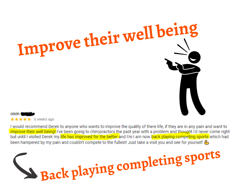 I would recommend Derek to anyone who wants to improve the quality of their life, if they are in any pain and want to improve their well being! I’ve been going to chiropractors the past year with a problem and thought I’d never come right but until I visited Derek my life has improved for the better and I am now back playing competing sports which had been hampered by my pain and couldn’t compete to the fullest! Just take a visit you and see for yourself ?
